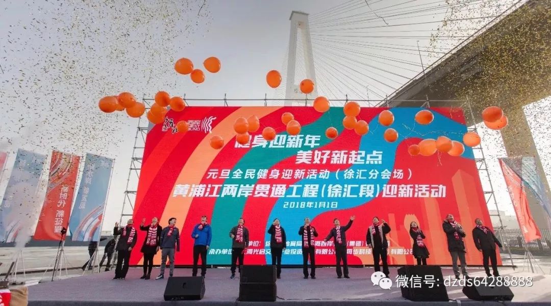 2018年元旦清晨,由徐汇区体育局和西岸集团主办的"健身迎新年·美好新起点"黄浦江两岸贯通工程(徐汇段)迎新活动,在徐浦大桥下徐梅路龙腾大道节点广场隆重举行。德扑之星交通(集团)旗下的"德扑之星滨江"参加了此次活动。